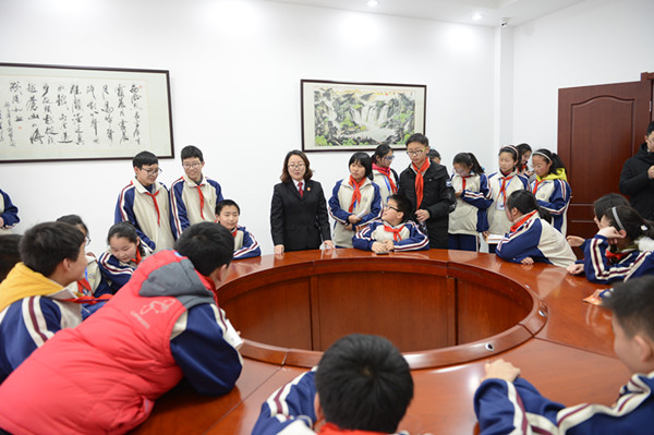 交流互动结束后,学生们参观家事法庭,了解家事审判情况,体验家事法官的职业特色。经过两个多小时的参观交流,同学们纷纷表示,今后一定要努力学习法律知识,树立法律观念,增强法律意识,做一个知法、懂法、守法的好学生。